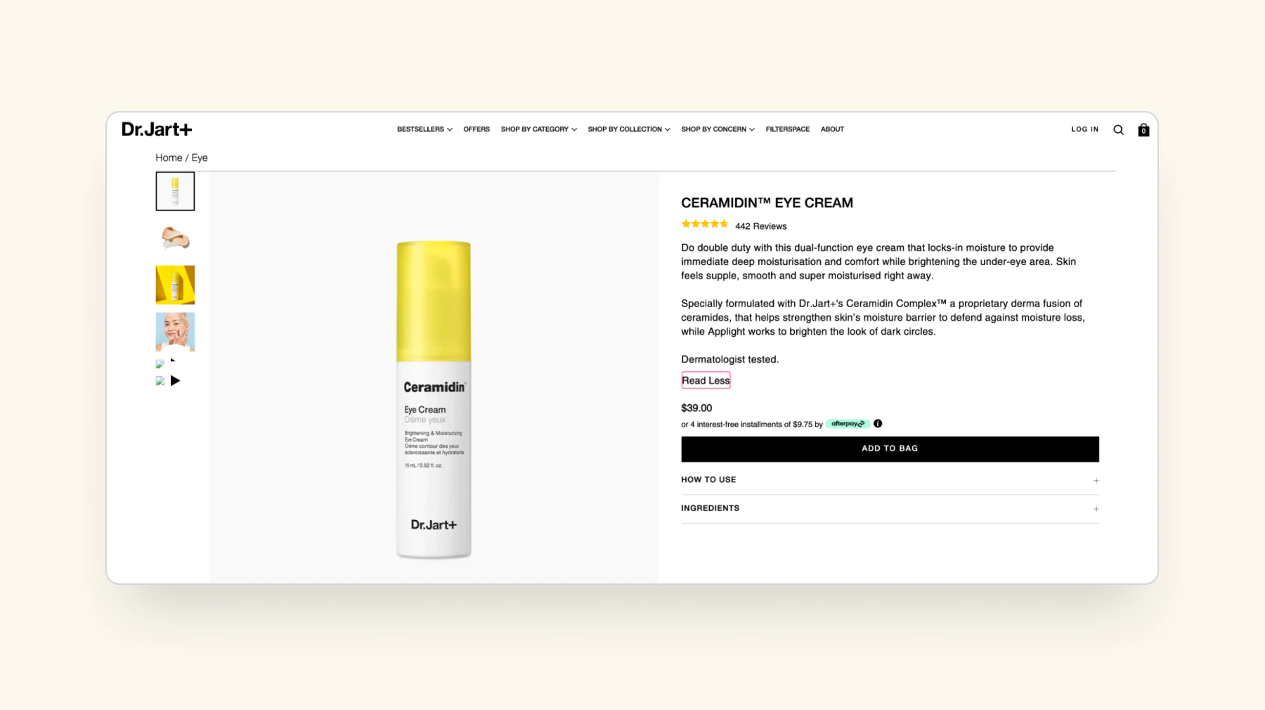 그렇긴 하지만 스킨 케어 회사 간에 공통된 특성이 있으며 가장 의미 있는 유사성을 조사해 볼 가치가 있습니다. 제품 페이지는 어떤 모습이어야 할까요? 고객이 강조하기를 원하는 세부정보는 무엇입니까? 고객은 다음으로 좋아하는 제품을 어떻게 발견합니까?