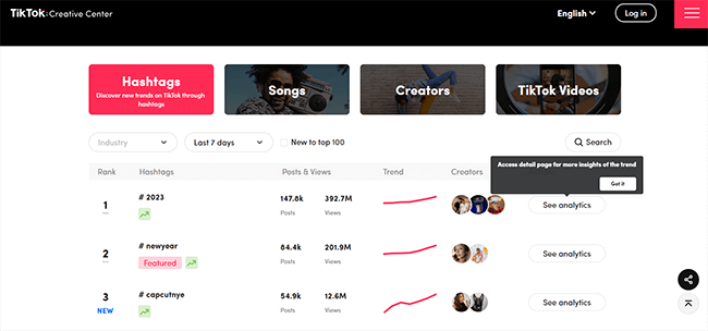 유행하는 주제를 조사하는 가장 쉬운 방법 중 하나는 해시태그를 사용하는 것입니다. 일부 소셜 미디어 사이트에는 사용자가 해시태그나 키워드로 주제를 검색할 수 있는 도구가 내장되어 있습니다. 이를 사용하여 사람들이 온라인에서 말하는 내용을 확인할 수 있습니다.