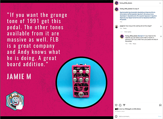 다음은 영국에 본사를 둔 기타 페달 제조업체인 Funny Little Boxes의 전술에 대한 좋은 예입니다.