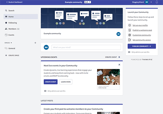 그렇게 하면 Thinkific이 즉시 커뮤니티 공간을 구축합니다. 그렇게 쉽습니다.