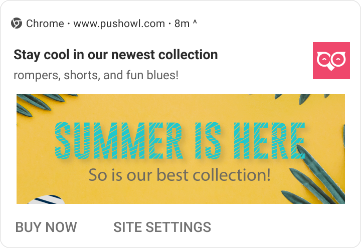 새 제품을 출시하든 기존 제품을 홍보하든 매력적인 영웅 이미지와 눈에 띄는 캡션이 포함된 푸시 알림을 보내면 구독자가 제품에 대해 더 관심을 갖게 하고 직접 구매하도록 유도합니다.