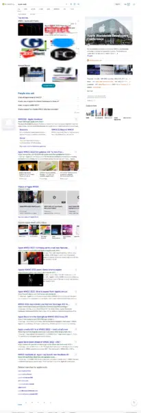 Google, Bing 및 DuckDuckGo에 대한 [Apple WWDC] 결과는 모두 CNN, CNBC, MacRumors, TechCrunch 및 기타 업체에서 게시한 지난 몇 분 또는 몇 시간 동안의 뉴스 기사에 대한 링크를 제공하여 훨씬 더 신선합니다.