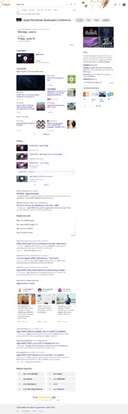 다음은 [apple wwdc]에 대한 검색 예입니다.