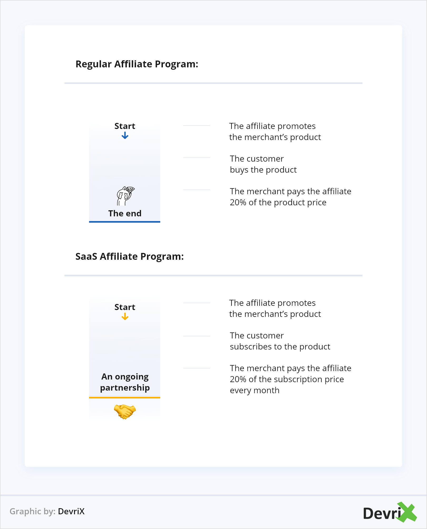 Z drugiej strony firmy SaaS opierają się na subskrypcji i w wielu przypadkach prowizje, które oferują, są powtarzalne i trwają, dopóki poleceni klienci nie pozostaną płatnymi klientami. Innymi słowy, partner promuje produkt, klient go kupuje, a sprzedawca płaci partnerowi prowizję co miesiąc, a nie tylko raz.