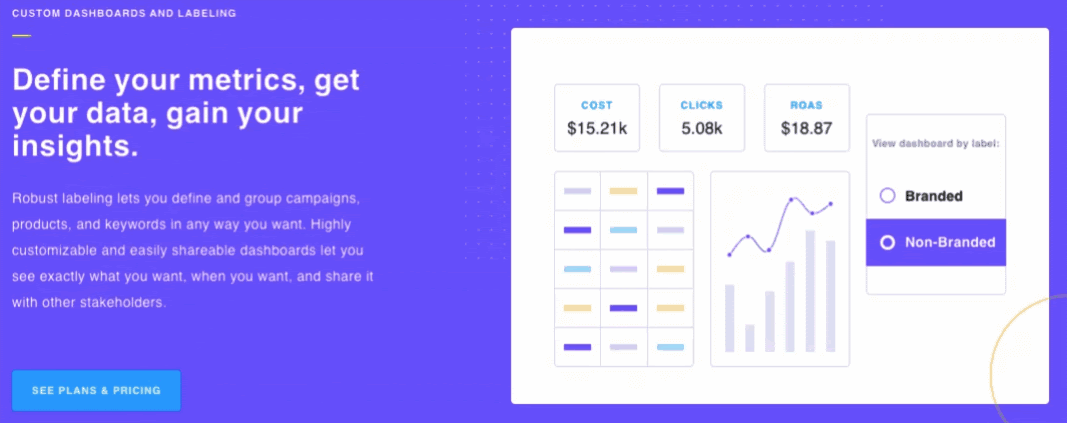 Oprócz śledzenia skuteczności możesz mieć dużą kontrolę nad kierunkiem reklam i kampanii. Downstream pozwala wybrać sposób grupowania produktów, słów kluczowych i kampanii.