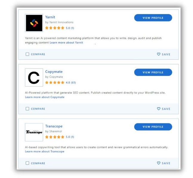 Witryny takie jak Capterra umożliwiają szybkie porównanie wielu platform AI.