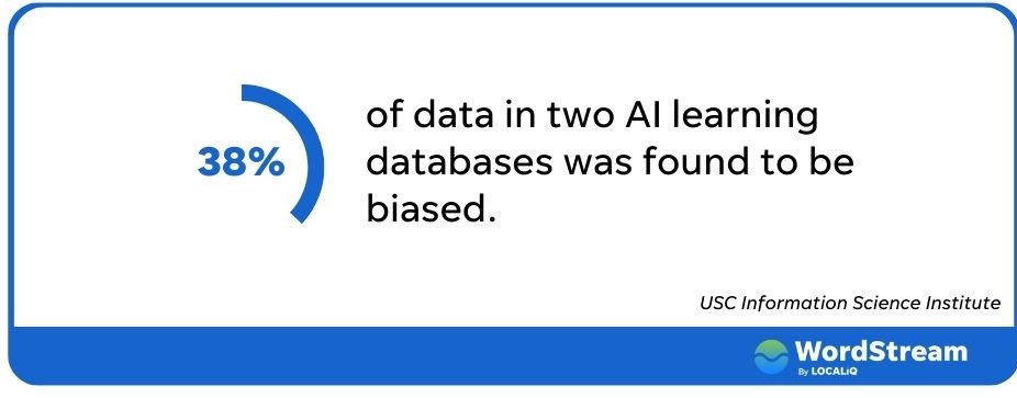 Stronniczość uczenia maszynowego ma kilka implikacji dla marketerów; najmniejszym z nich jest słaba skuteczność reklamy. Jeśli chcesz dotrzeć do jak największej liczby potencjalnych klientów, platforma kierowania reklam, która wyklucza duże części populacji, nie jest idealna.