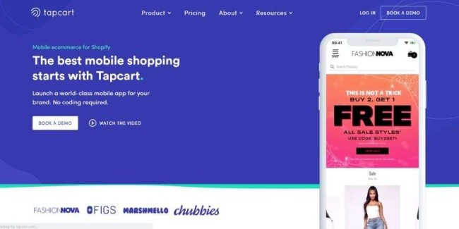 Czego możemy się z tego nauczyć : strona docelowa Tapcart wykorzystuje wysokiej jakości obrazy, automatycznie odtwarzane filmy i animacje GIF, które pokazują aplikację w akcji i jej wyniki.