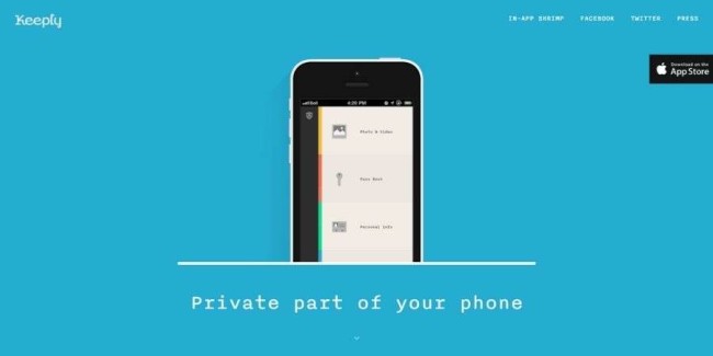 Co ma ta strona docelowa : niezwykle minimalistyczna i zachowująca usprawniony przepływ w jednej kolumnie, Keeply zaczyna się od zrzutu ekranu aplikacji, jasnego wyjaśnienia, do czego służy, oraz kopii zawierającej kluczowe korzyści.