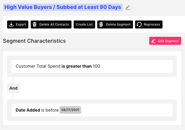 Możesz utworzyć prosty segment, aby rozpocząć zawierający klientów, którzy wydali ponad X kwoty, a następnie śledzić, jak ostatnio dokonali subskrypcji.