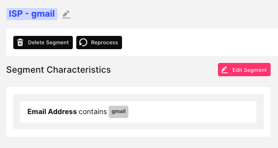 Następnie w menu segmentu możesz wybrać Adres e-mail → Zawiera , a następnie wpisać uchwyt ISP. Na przykład: