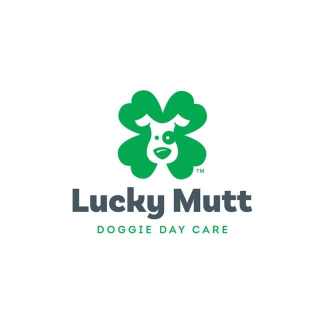 Projekt logo Lucky Mutt wykorzystuje wizerunek głowy psa w negatywnej przestrzeni otoczonej czterolistną koniczyną, symbolem szczęścia. Zabawny charakter logo współgra z dobrym samopoczuciem tej organizacji, która dba o ukochane zwierzaki swoich klientów.