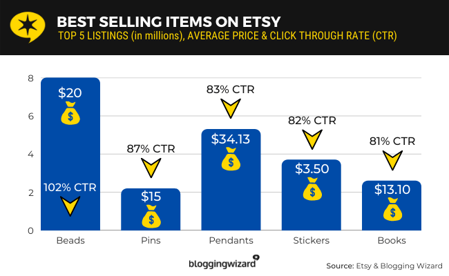 W tym poście podsumowaliśmy najlepiej sprzedające się produkty na Etsy i uwzględniliśmy dane dla każdego z nich.