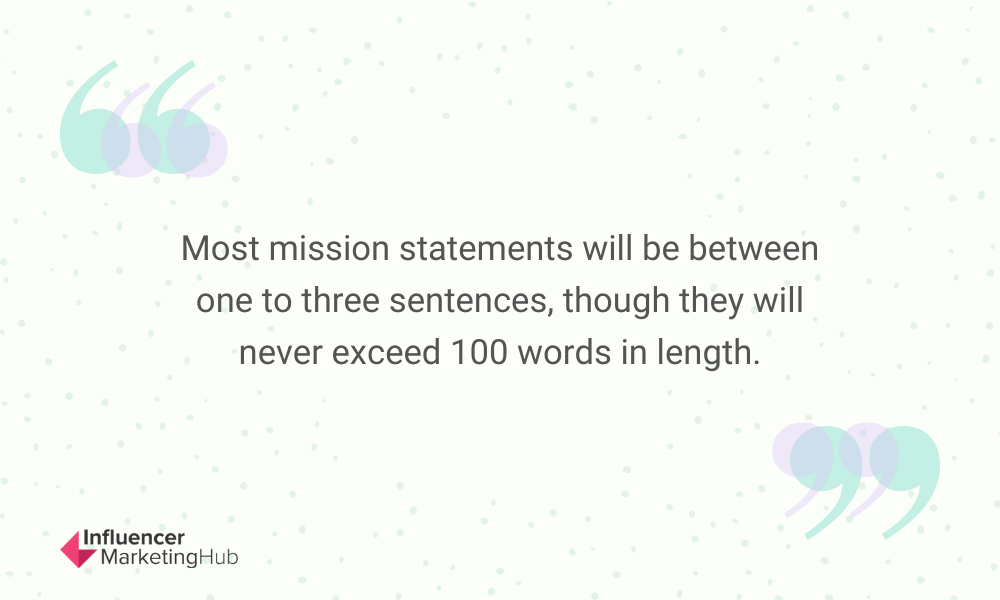 Jednak deklaracje misji mogą być trudne. Większość oświadczeń o misji będzie zawierać od jednego do trzech zdań, ale nigdy nie przekroczy 100 słów. Jednak większość oświadczeń o misji będzie tylko jednym, zwięzłym zdaniem. Należy o tym pamiętać.