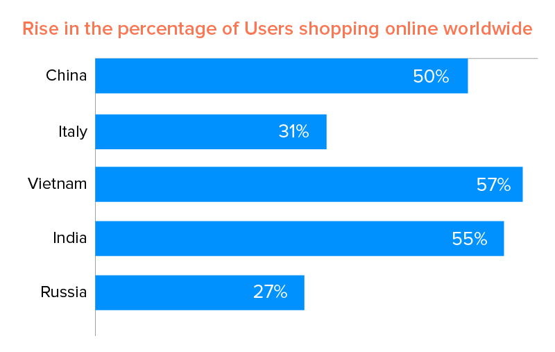 Wręcz przeciwnie , gwałtowny wzrost wykorzystania portali handlu elektronicznego i aplikacji detalicznych na smartfony do zakupów online w różnych krajach.