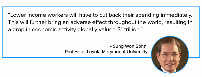 Spadek popytu na podróże zmusi miliony pracowników do utraty pracy lub skrócenia czasu pracy. Zwłaszcza ci, którzy wykonują gorzej płatne prace usługowe, takie jak sprzątanie i kelner / kelnerka.