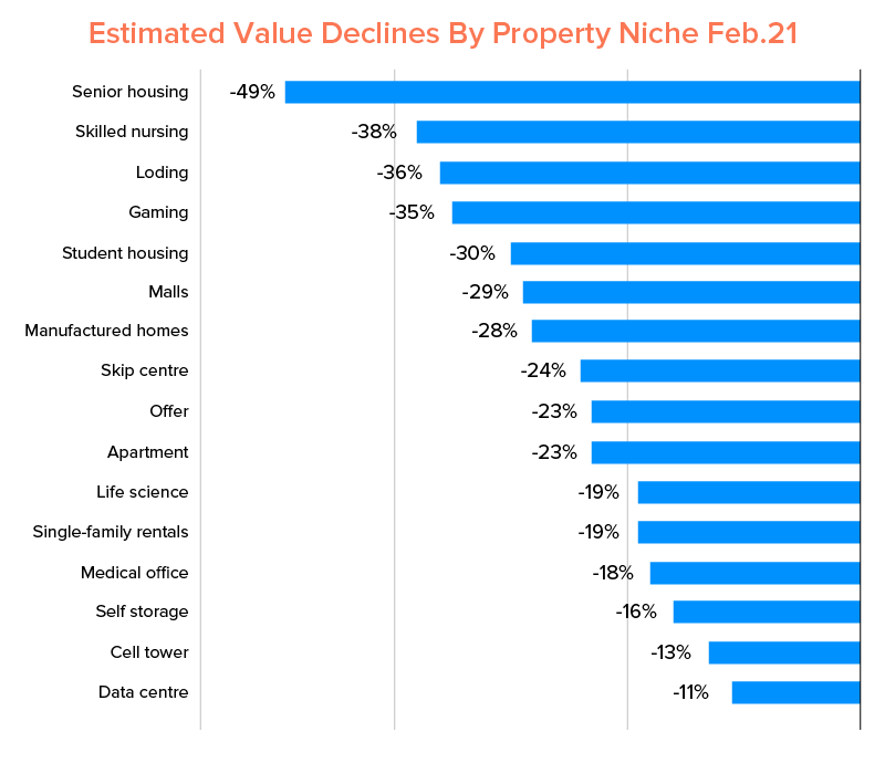 Inną branżą, która została obezwładniona przez chorobę koronawirusową 2019 , jest rynek nieruchomości. Rosnące kwarantanny, godziny policyjne i zwolnienia pracowników zakłócają dostawy i wpływają na poziom wydatków konsumentów w różnych segmentach.