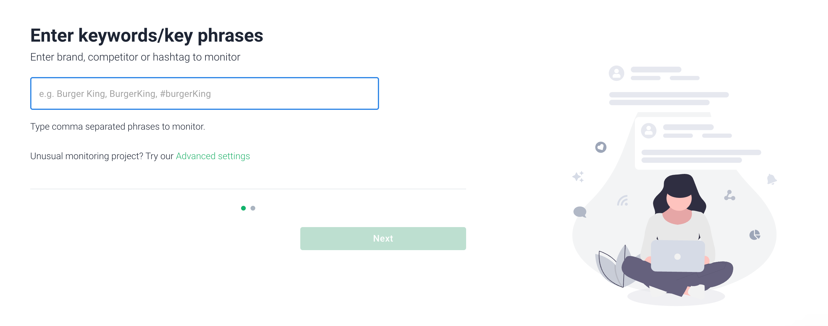 Wpisz nazwę swojej marki, aby rozpocząć nowy projekt. Narzędzie rozpocznie zbieranie wszystkich publicznie dostępnych w Internecie wzmianek o Twojej firmie.