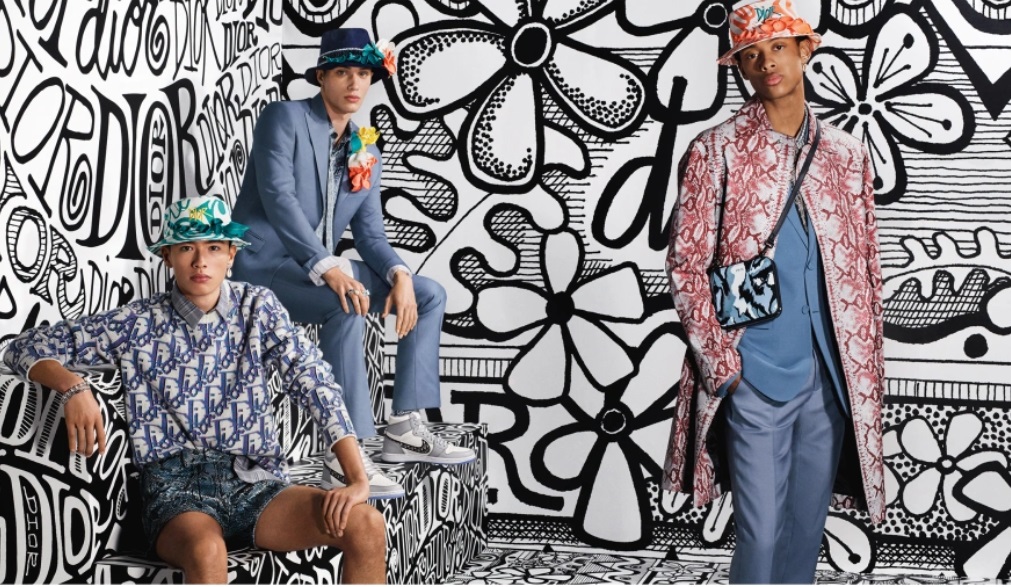 Dior promował swoją przedjesienną odzież męską na rok 2020, sporządzając notatkę od producenta desek surfingowych Shawna Stussy’ego. W tej reklamie widzimy różnych mężczyzn noszących stroje Diora. Stoją w otoczeniu czarno-białych nadruków i liter o tematyce psychodelicznej.