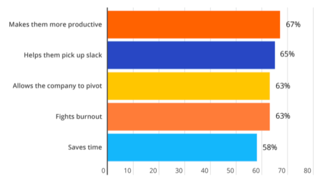 Ponadto pracownicy zgadzają się, że zautomatyzowane przepływy pracy łagodzą luki, elastyczność obrotu, zwalczają wypalenie i oszczędzają czas.