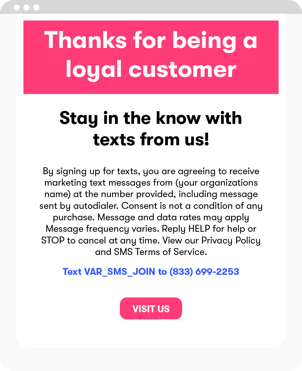 To świetny sposób na poszerzenie listy SMS-ów o obecnych klientów i umożliwienie im dostępu do ekskluzywnych ofert i rabatów.