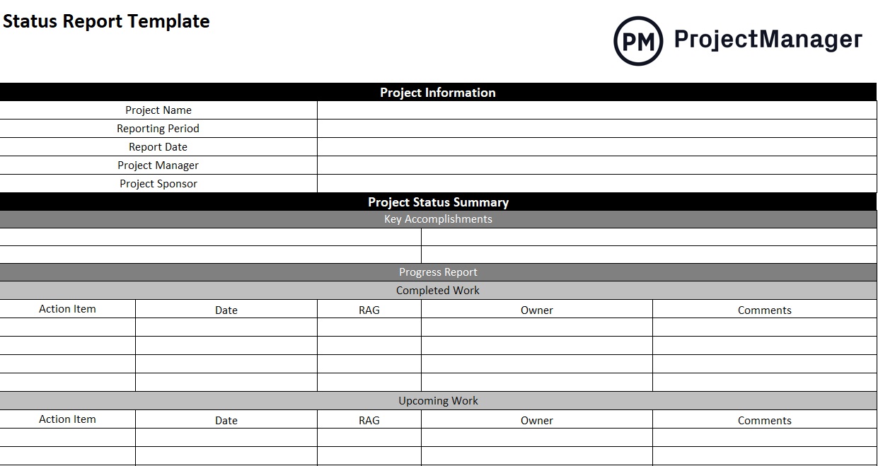 Raport stanu zawiera podsumowanie kluczowych osiągnięć, prac, które zostały zakończone w tym okresie, prac planowanych do wykonania w ramach projektu, osiągniętych kamieni milowych i rezultatów. Jest też miejsce na listę czynności do wykonania w przyszłości. Inne kwestie podlegające przeglądowi obejmują budżet, harmonogram, jakość, ryzyko, problemy i blokady na drodze.