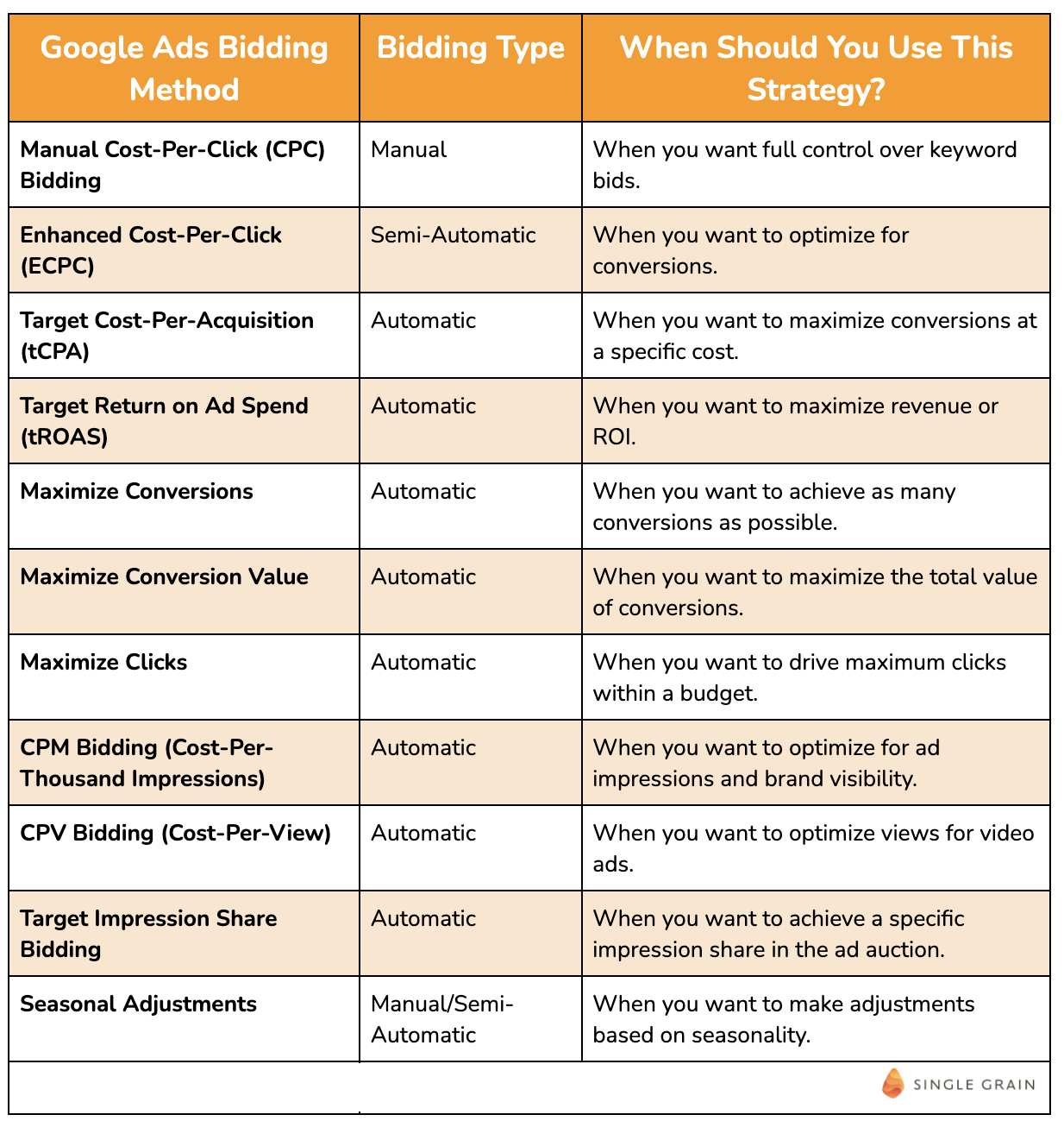 Każda strategia ustalania stawek Google Ads, którą omówię w tym artykule, można podzielić na trzy kategorie: