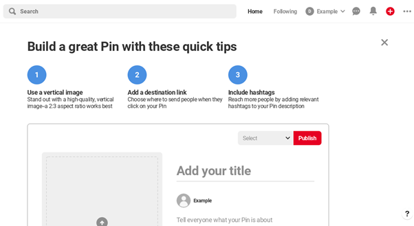 Pinterest daje krótkie wskazówki dotyczące promowania Twojej strony zaraz po rejestracji: