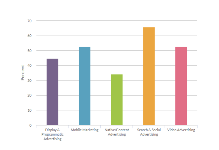 Reklamy w wyszukiwarkach i społecznościach, marketing mobilny oraz reklamy displayowe i zautomatyzowane to trzy najlepsze w tym segmencie.