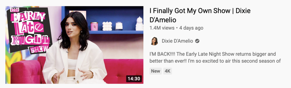 Gospodarka twórców została zbudowana przez znanych influencerów, którzy mieli od setek tysięcy do milionów obserwujących w mediach społecznościowych. Casey Neistat był pierwszym graczem, jednym z nielicznych YouTuberów, którzy zdecydowali się tworzyć vlogi, które śledziły jego życie w Nowym Jorku. Wraz z rozwojem ekonomii twórców widzimy teraz treści, które wykraczają poza kulisy życia ludzi — widzimy, jak twórcy tworzą własne programy. Dixie D'Amelio niedawno wypuściła swój program, The Early Late Night Show, konkurując z uznanymi i wspieranymi przez telewizję wieczornymi programami, takimi jak Jimmy Fallon i Jimmy Kimmel.