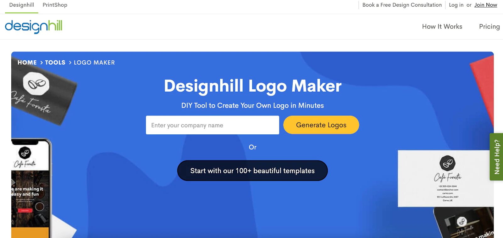 Jeśli szukasz logo premium, ten internetowy kreator logo zapewni Ci dziesiątki wysokiej jakości opcji do wyboru. Designhill zada Ci serię pytań dotyczących Twojej marki, a następnie dostarczy dopasowane opcje w oparciu o Twoje odpowiedzi. Możesz dostosować kolory, slogany, symbole i inne opcje dostosowywania, aby określić, który styl najlepiej pasuje do Twojej marki.