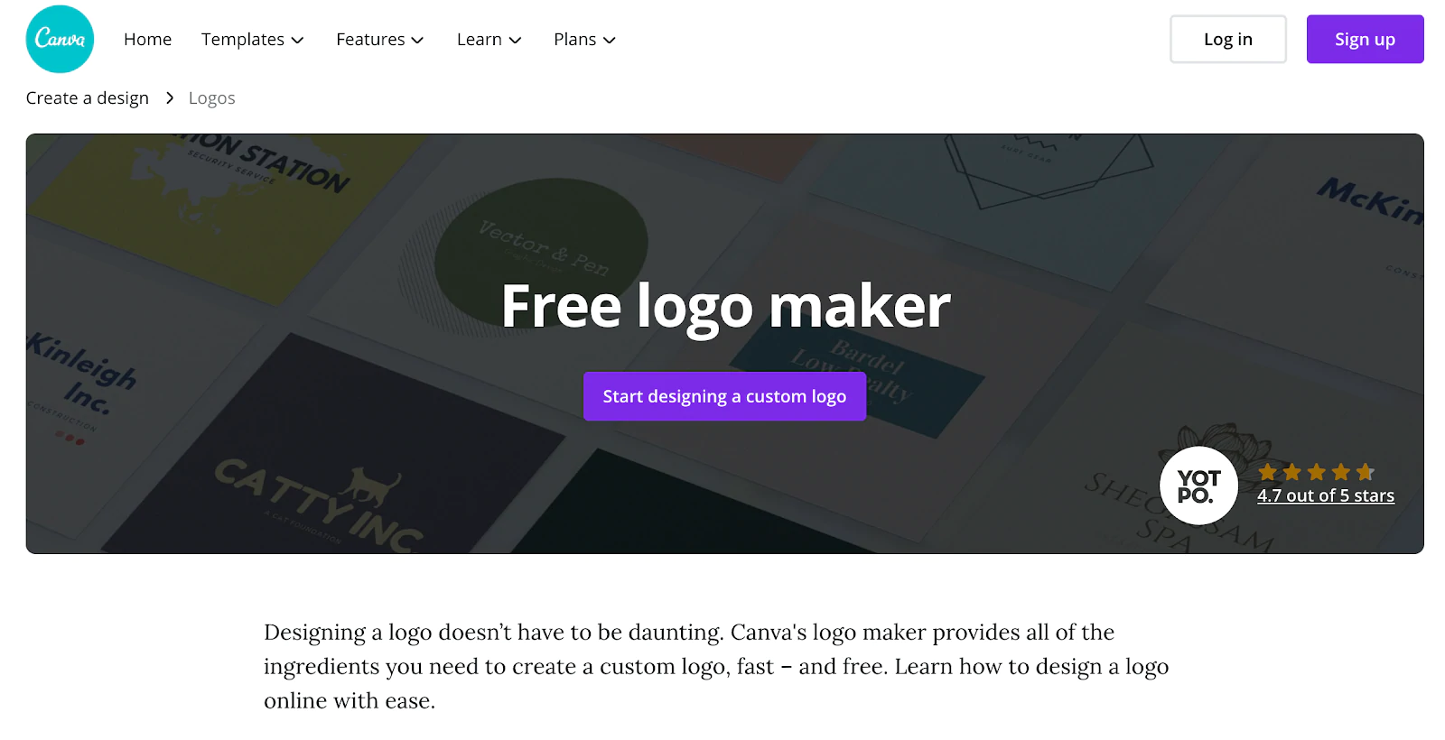 Niektóre logo w tym kreatorze są sprytne i zabawne, ale będziesz musiał samodzielnie je edytować. Narzędzie do projektowania w serwisie Canva sprawia, że jest to naprawdę proste, a ponadto zawiera mnóstwo artykułów pomocy, które pomogą Ci, jeśli utkniesz w czymś. Po zakończeniu projektowania możesz pobrać bezpłatnie i używać go tak, jak chcesz.