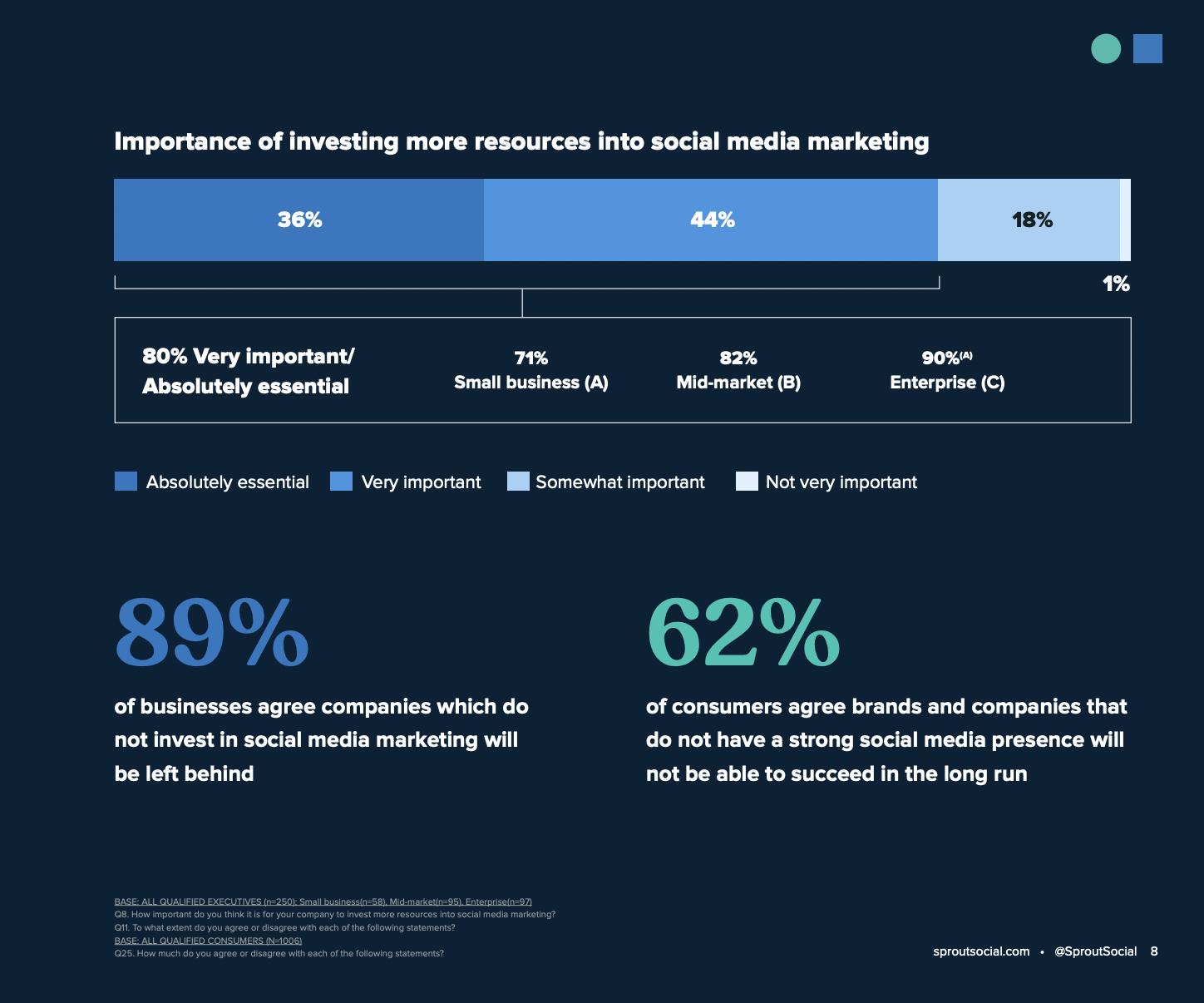 14. Według badań Sprout, 89% dyrektorów firm zgadza się, że firmy, które nie inwestują w marketing w mediach społecznościowych, zostaną w tyle.