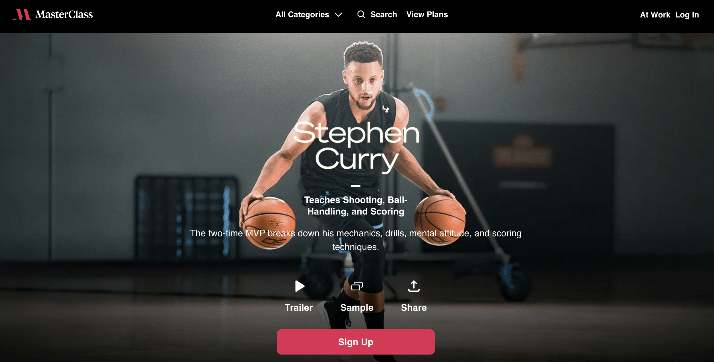 Masterclass Steph Curry to niezwykle cenne doświadczenie edukacyjne dla każdego początkującego sportowca lub entuzjasty koszykówki. Daje uczniom wyjątkowy i dogłębny wgląd w życie jednego z największych graczy, jaki kiedykolwiek zaszczycił kort. Pasja Stepha do koszykówki przebija się z każdą lekcją, a on udziela cennych rad, które można zastosować w każdym treningu.