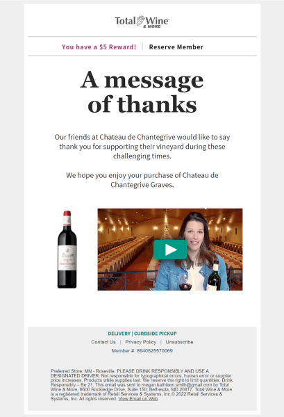 Total Wine połączyło siły z Chateau de Chantegrive, aby stworzyć film z podziękowaniami z winnicy, który oferuje kilka ciekawostek na temat właściwości i produkcji wina.
