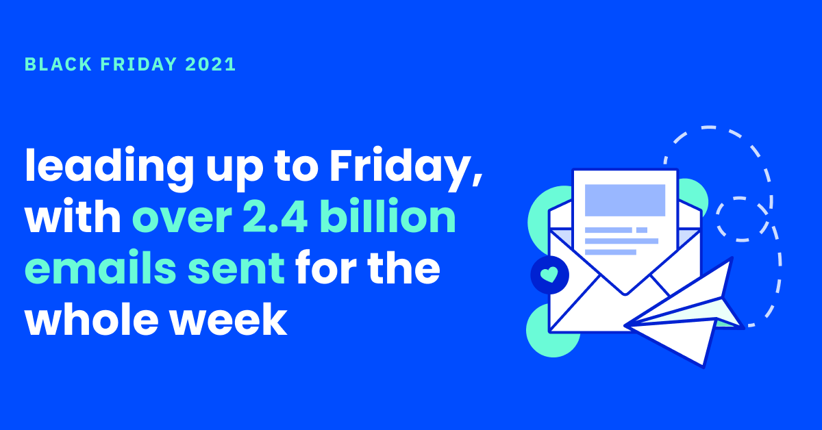 Marki zwiększyły liczbę wysyłanych codziennie wiadomości e-mail do piątku, wysyłając w tym tygodniu ponad 2,4 miliarda wiadomości e-mail. Jednak w piątek odnotowano największą liczbę wysłanych e-maili – 486 milionów . Sam piątek stanowił większość e-maili przez cały tydzień poprzedzający Czarny Piątek, podkreślając znaczenie samego dnia. Liczba e-maili wysłanych przez marki była stała rok do roku.