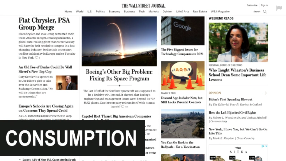 Aqui está um exemplo de uma página inicial de consumo do The Wall Street Journal :