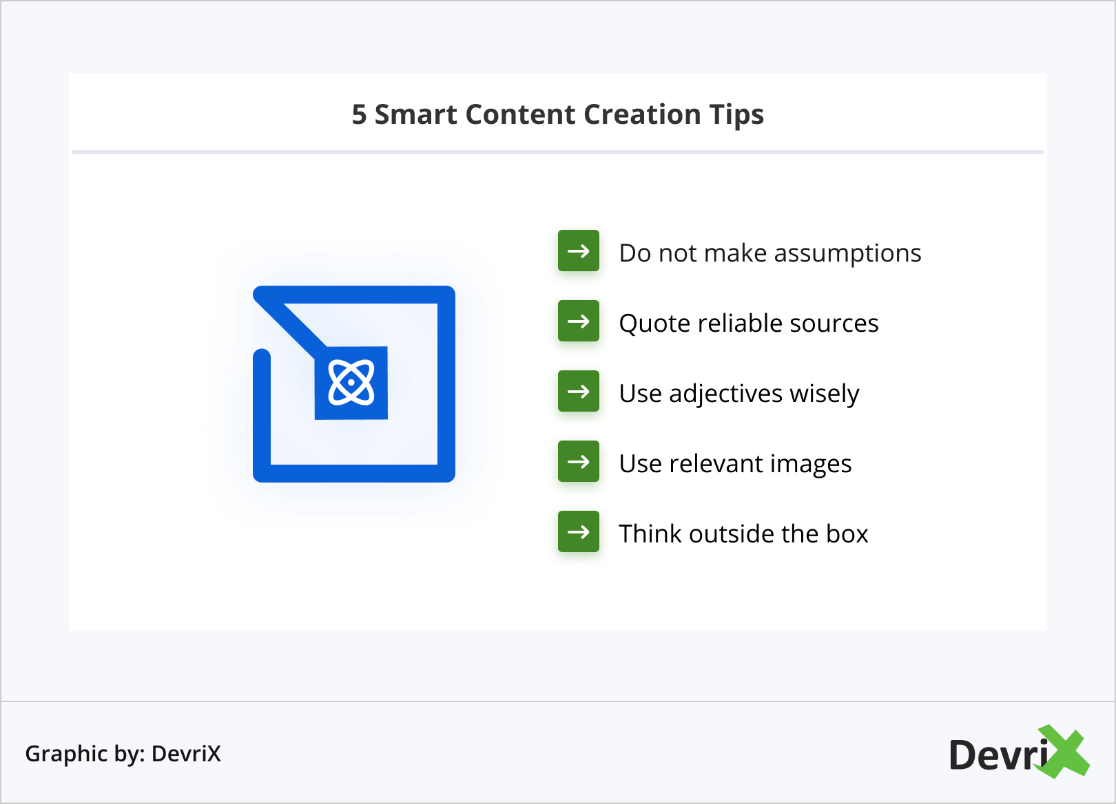 - Nunca faça suposições. Faça uma pesquisa adequada e cite fontes confiáveis. Vá além entrevistando seus clientes e enviando pesquisas.