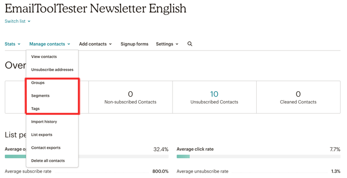 Vencedor: os recursos de gerenciamento de lista do ActiveCampaign são realmente impressionantes. MailChimp faz um bom trabalho, mas provavelmente poderia tornar isso um pouco mais simples.