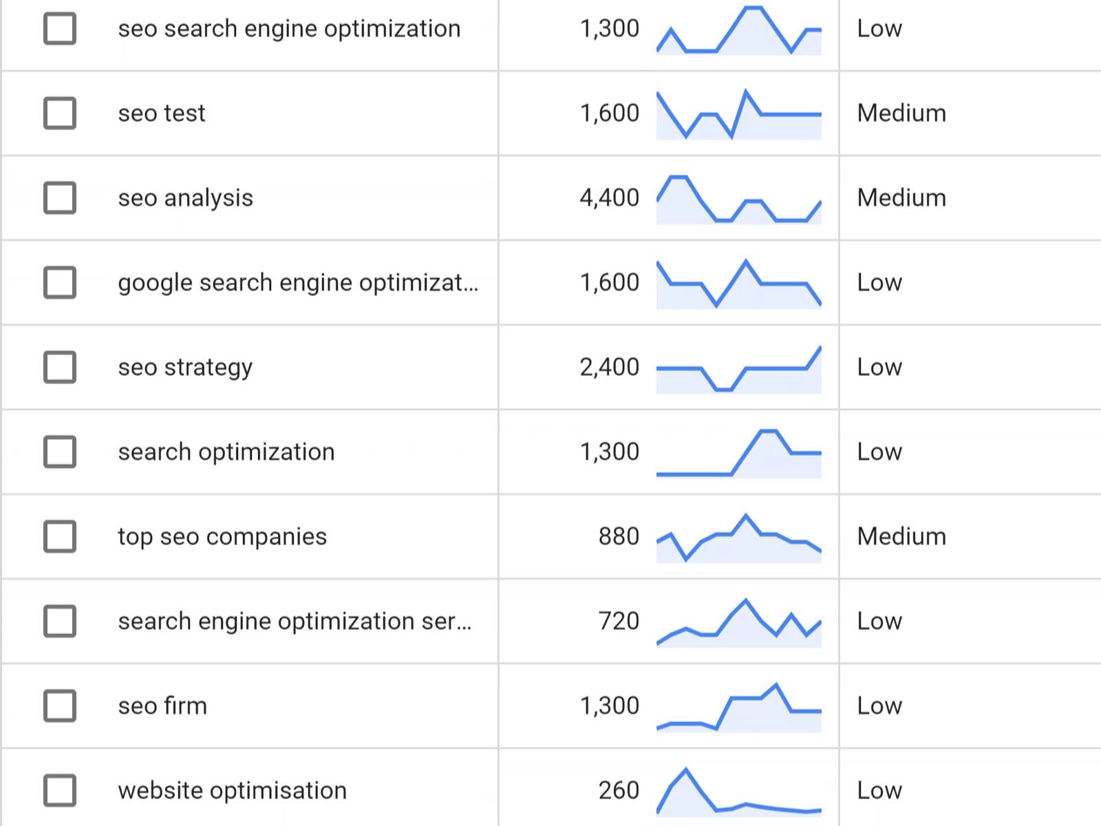 E assim, você tem uma lista de termos de super baixa concorrência.