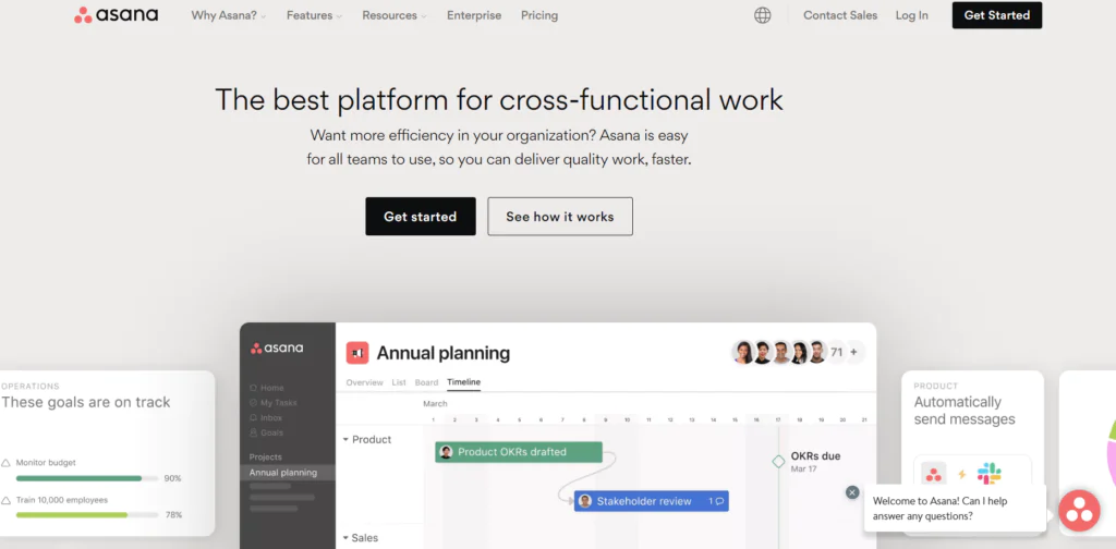 - Gerenciamento de tarefas: Asana fornece uma plataforma abrangente para organizar e gerenciar tarefas.