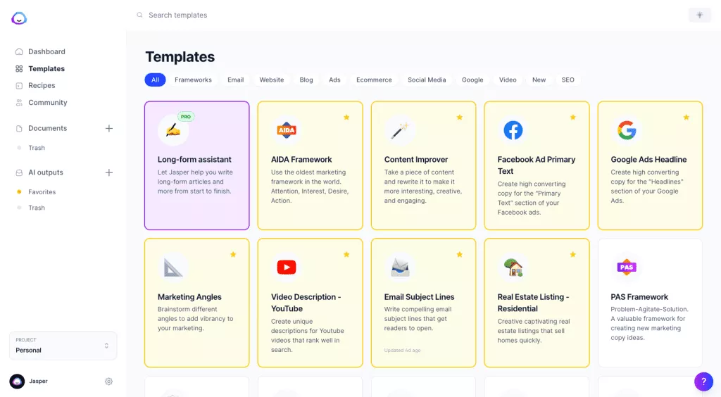 Ferramentas como Jasper.AI facilitam a escrita (Fonte da imagem: Jasper.ai )