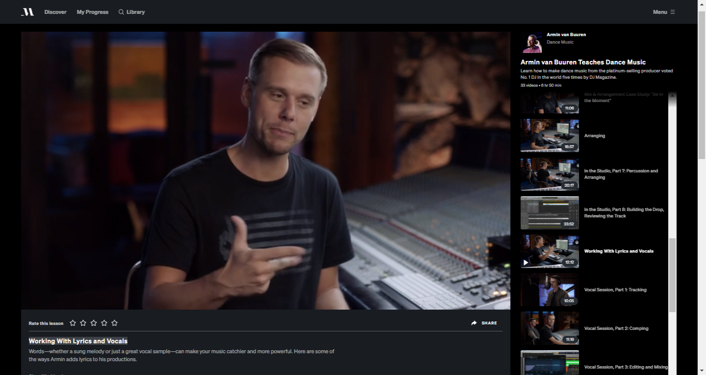 No geral, eu recomendo a Masterclass de Armin van Buuren para qualquer aspirante a DJ-produtor que queira começar na indústria da música.