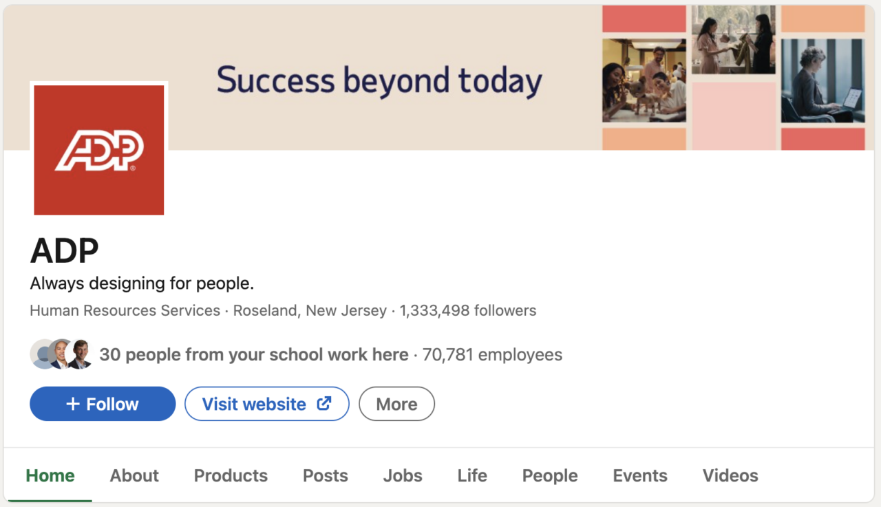 A Company Page da ADP no LinkedIn tornou-se uma referência para quem deseja saber mais sobre a empresa: