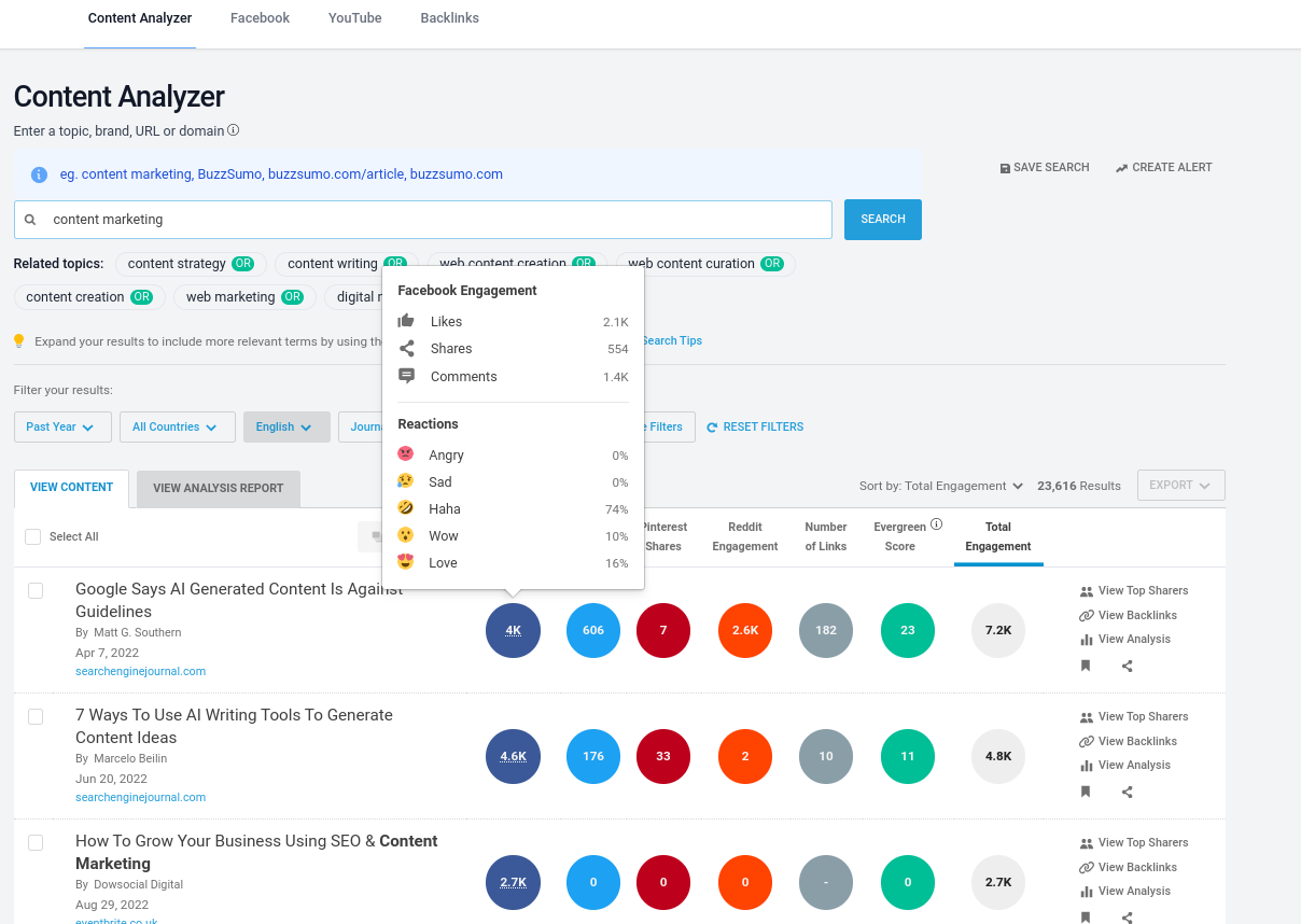 Suponha que você já saiba sobre o que deseja escrever e precise de ajuda para garantir que as postagens do seu blog possam competir com outros conteúdos de alto desempenho. Agora você precisa realizar alguma análise de conteúdo para determinar o conteúdo mais compartilhado para ver o que você está enfrentando.