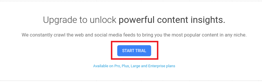 Para obter qualquer valor real do BuzzSumo, você precisará criar uma conta clicando no botão Iniciar avaliação no meio dos resultados do analisador de conteúdo: