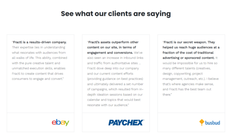 Especificamente, procure exemplos de trabalhos anteriores semelhantes ao que você precisa. Eles normalmente atendem ao seu setor? Isso será importante para marcas em nichos especializados como saúde, finanças ou direito, onde certos padrões de conteúdo devem ser atendidos.
