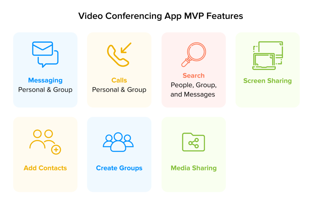 Com isso abordado, vamos começar analisando o primeiro elemento do custo de desenvolvimento do aplicativo de videoconferência – recursos do aplicativo de videoconferência .