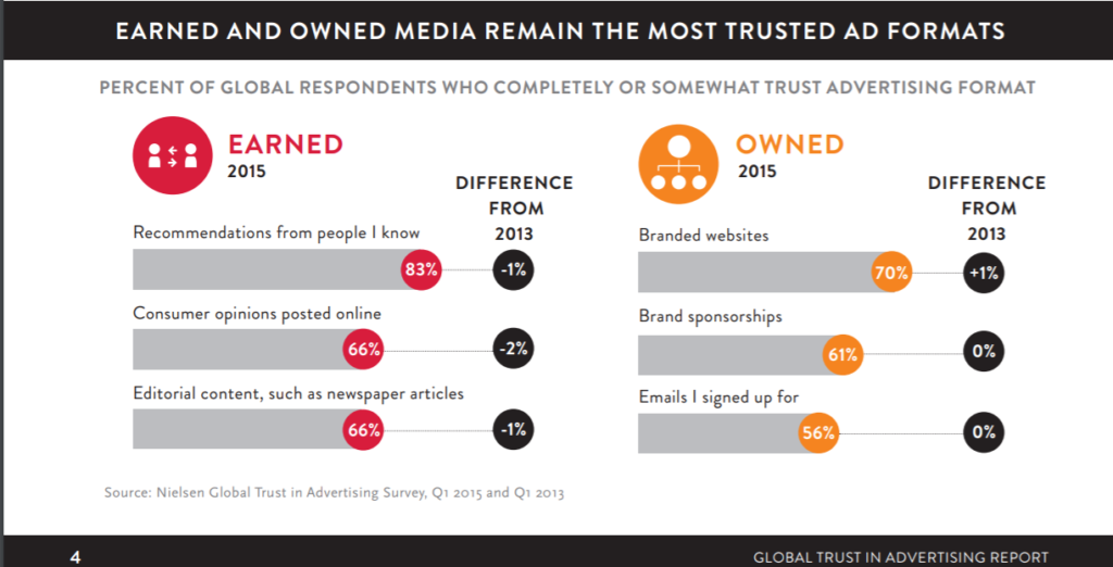 Cada Brand Advocate influencia decisivamente as intenções de compra de outros clientes. De acordo com o Global Trust in Advertising 2015 da Nielsen, a publicidade mais confiável vem diretamente das pessoas que conhecemos e confiamos, e 83% dos clientes confiam nas recomendações de amigos e conhecidos para tomar uma decisão sobre uma compra.