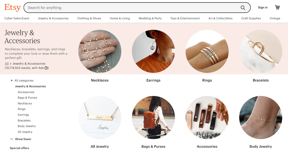 O Etsy foi lançado como um mercado especificamente adaptado para fabricantes, artistas e outros criativos que desejam vender seus produtos. Agora, marcas de todos os tipos começam no mercado, expandem para outras alternativas do Etsy e até mesmo lançam seu próprio site.
